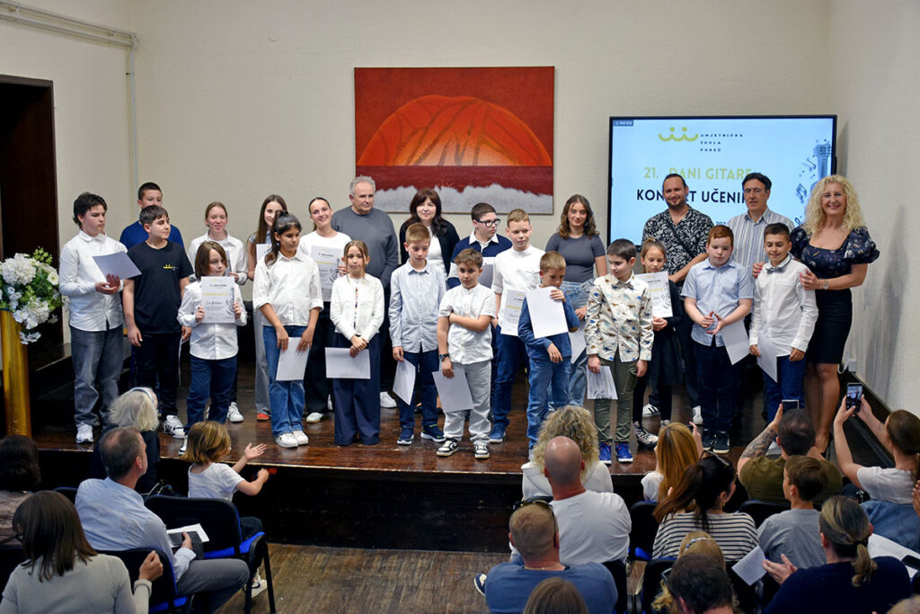 Samanta Stell na flauti, Anamarija Lovrečić na harmonici i Sandro Vešligaj za klavirom otvorili su koncert živahnim Marschem n.3 A. Wiltenbergera, u aranžmanu Vešligaj i Lovrečić (izvorno je pisan za dva klavira i violinu). Posebno je zanimljiva bila izvedba Romance op.27 C. Saint-Saensa u kojoj je klavir na trenutke zvučao kao harfa. Središnji dio koncerta ispunile su dvije skladbe za duete: Stell – Vešligaj izveli su Sonatu za flautu i klavir FP164 F. Poulenca a Stell-Lovrečić Pet španjolskih plesova M. Moszkowskog. Vrhunac koncerta ispunile su izvedbe skladbe Šegun-Šegać naše Đeni Dekleva-Radaković i Tango istiano op.81 Puležana L. Demarina. Publika ih je pratila aplauzima udivljenja, a na kraju koncerta grupa učenika škole zahvalila im je cvijećem.