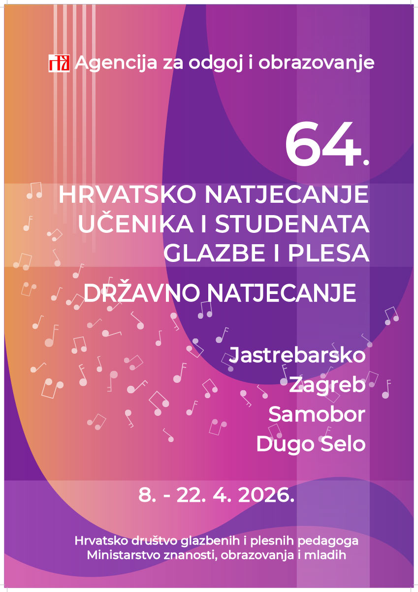 Osnovnoj glazbenoj školi Rudolfa Matza u Zagrebu u srijedu, 15. travnja 2026. godine, održano je 64. hrvatsko natjecanje učenika i studenata glazbe i plesa – državna razina u disciplini harmonika.